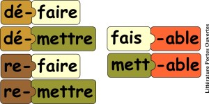 Pour fabriquer des mots, on peut aussi procéder par dérivation, c’est-à-dire par ajout d’un affixe (préfixe ou suffixe). Par exemple, remettre est préfixé (re-mettre) et mettable a été formé par l’ajout du suffixe -able.