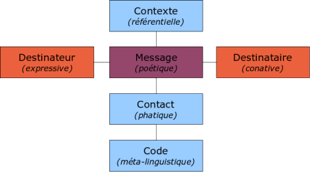 D’où le schéma suivant, d’après Roman Jakobson, tel que mis en forme dans l’encyclopédie Wikipédia :