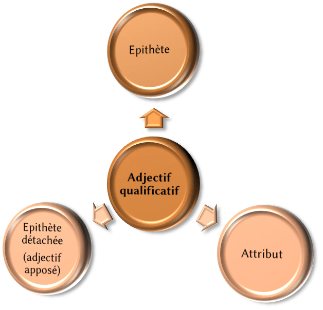 Comme je l’ai déjà écrit plus haut, l’adjectif qualificatif a pour fonction de caractériser un nom. Pour ce faire, il peut assumer trois fonctions : épithète, attribut et « épithète détachée » (appellation que j’ai découverte à la fac pour l’adjectif apposé).