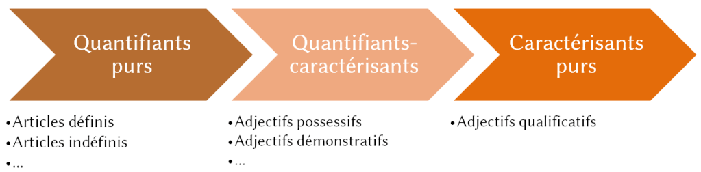 La grammaire traditionnelle utilise le terme d’adjectif pour désigner plusieurs classes différentes de mots :