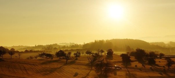 il regarde le soleil se lever au matin.
