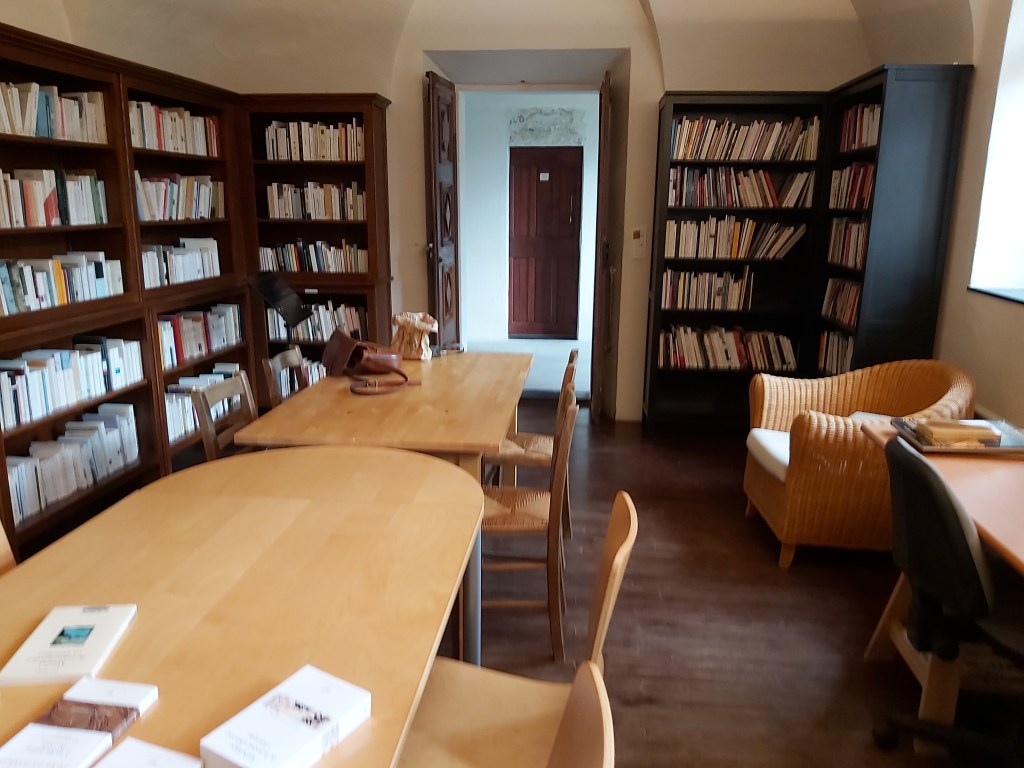 Cette édition 2021 aura cependant été bien particulière pour moi, puisque Sabine Venaruzzo, organisatrice du festival, m’a proposé d’animer l’atelier d’écriture de cette année. Même si cela a déjà été fait de vive voix, je me permets ici de la remercier encore pour sa confiance et pour l’immense plaisir qu’elle m’a fait. Cette première partie de la journée s’est tenue dans la belle bibliothèque du monastère. J’ai donc présenté le thème annuel du Printemps des Poètes, le Désir, en citant de nombreux poèmes anciens et modernes, avant de laisser les cinq participants se plier avec joie à l’écriture.