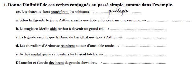 - Ensuite, il s’agira de recopier au brouillon les verbes dont les enfants estiment qu’ils sont au passé simple (donc des formes verbales encore inconnues d’eux).