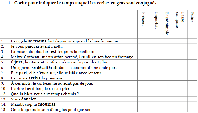 CM2 En plus des temps déjà appris, ils mémorisent, au cours de l’année, le passé simple et le plus-que-parfait pour :
