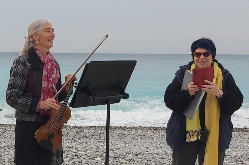 L’aube se nimbait d’un voile, ce matin, et moirait le ciel de reflets argentés. Sur la plage du Centenaire, à l’embouchure du Paillon, les galets répétaient inlassablement leur chant cristallin. Aujourd’hui, les rares coureurs matinaux n’étaient pas les seuls à s’être levés pour assister à ce spectacle. Sur la plage, une petite foule s’est réunie autour de Marilyne Bertoncini et Sophie Allain.