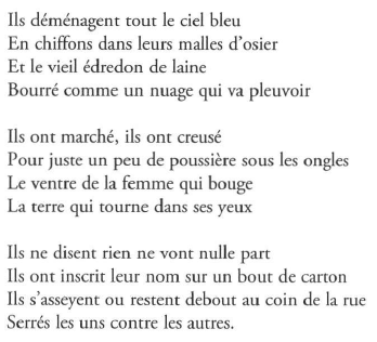 Cette humanité précaire qui apparaît au fil des pages résonne avec l’actualité la plus brûlante comme avec notre quotidien le plus actuel, en dépit même des nombreuses années qui séparent cette réécriture de leur première naissance : les travailleurs, les émigrés, les enfants du centre aéré, les prostituées sur le trottoir, les malades et les brancardiers de l’hôpital… Tous ces gens-là : nos semblables, nos frères, nos compagnons d’exil.
