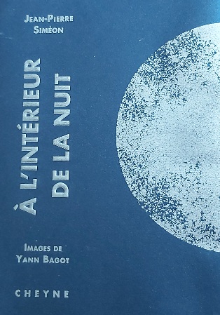 À l’intérieur de la nuit est un très beau petit recueil paru en 2021 chez Cheyne. Avant même de lire les mots, on est attiré par la beauté de l’objet-livre, où des pages bleu-nuit alternent avec les pages blanches. Les caractères sont argentés sur le papier bleu, et bleus sur le papier blanc. Une telle finesse de fabrication fait penser à un livre artisanal, mais cette première édition a été tirée à 1400 exemplaires, ce qui est beaucoup quand on parle de poésie, et qui mérite d’être souligné.