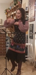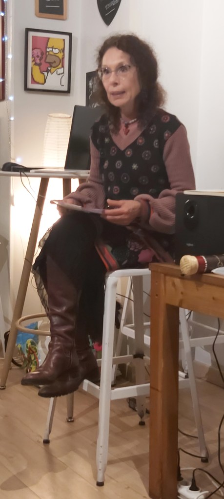 Béatrice Machet est performeuse autant que poète. Formée aux arts du son, elle est venue avec un ordinateur et des enceintes, grâce auxquels sa voix se mêle à d’autres, ainsi qu’à des bruitages, en une savante polyphonie qui donne écho au texte et le souligne. Ses poèmes, en langue française, invitent volontiers l’anglais, mais aussi le lakota, la langue des Sioux. Elle écrit parfois aussi directement en anglais.