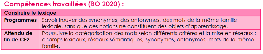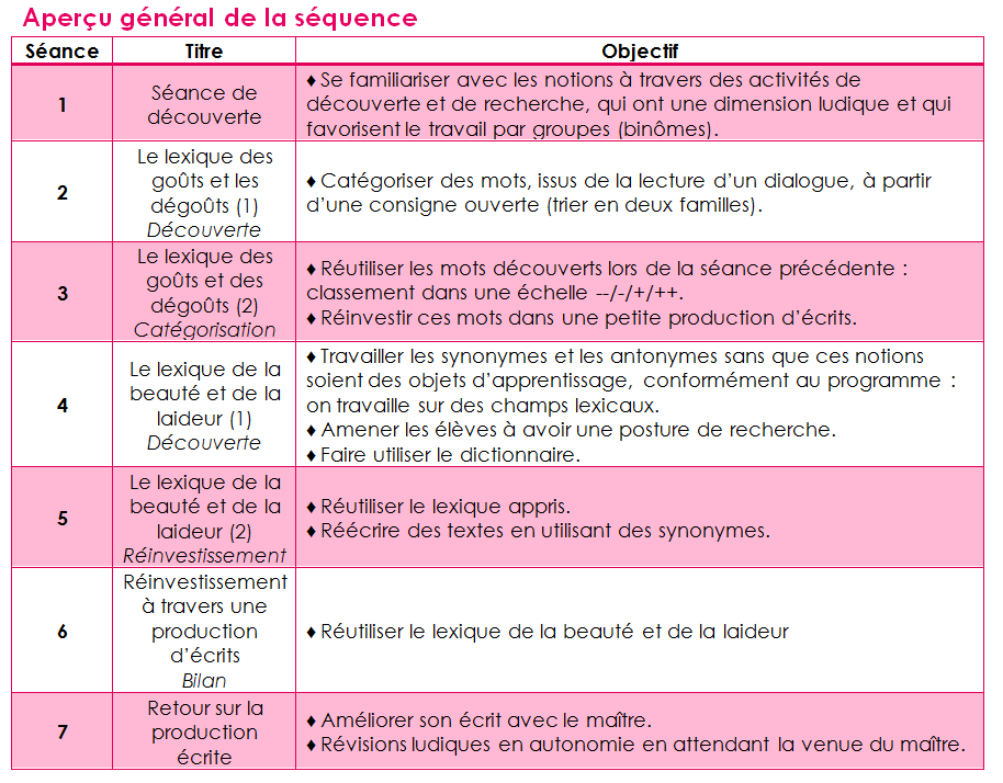 Je vous propose aujourd’hui une séquence d’enseignement des synonymes et des antonymes que je proposerai, pour la prochaine période de classe, à mes élèves de CE2. Conformément aux programmes, ces notions ne sont pas enseignées de façon systématique, mais à travers des champs lexicaux. Nous traiterons successivement les goûts et dégoûts, puis la beauté et la laideur. Ces champs lexicaux enrichissent le vocabulaire des élèves, tout en travaillant les notions de synonymes et d’antonymes.