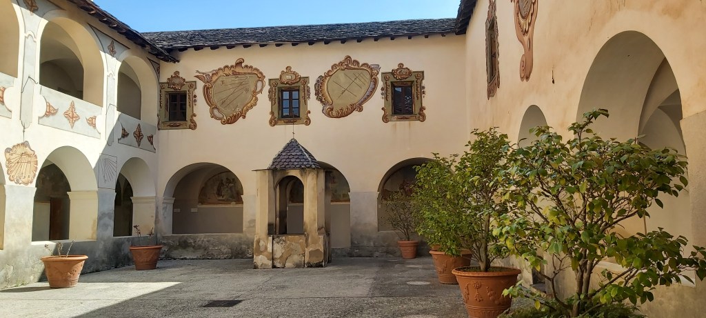 12h00. Je dispose d’un peu de temps libre. Marina Skalova se repose après son long voyage jusqu’à Saorge. J’en profite pour me promener dans les jardins du monastère, parmi les arbres en fleur qui sentent bon le printemps, contemplant la vue sur la vallée depuis ce point de vue élevé. Je parcours également le cloître, admirant les fresques consacrées à la vie de Saint François. Ce couvent est vraiment très paisible ; c’est un lieu idéal pour se laisser voyager dans le monde de la poésie.
