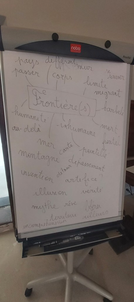 Troisième sollicitation: un « brainstorming » très classique autour du mot-clef « frontières ». Le paper-board s’emplit assez vite d’un nuage de mots.