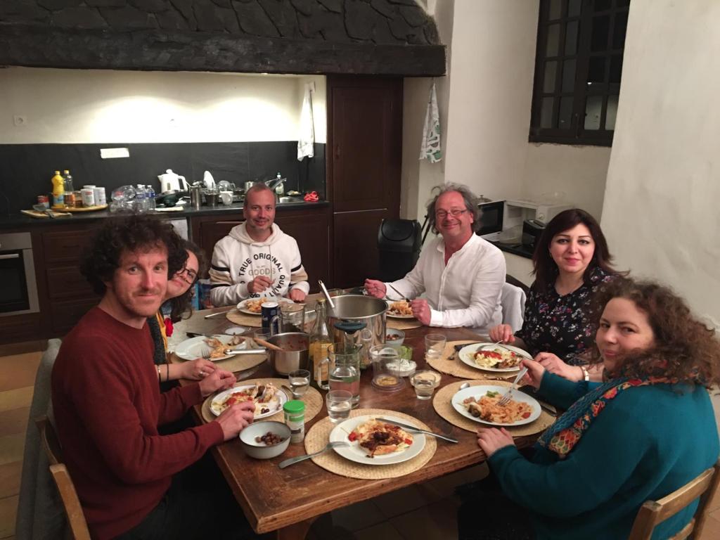 21h00. C’est enfin le moment du repas partagé avec les membres du PoëtBuro et les poètes invités du festival. Un moment simple, chaleureux, ponctué de rires et de chants. C’est le signe que la mayonnaise a pris. Les deux poétesses invitées, Marina Skalova et Salpy Baghdassarian, sont heureuses d’être là, et se sont mises au diapason de notre joyeuse équipe. Cela augure le meilleur pour la journée du lendemain.