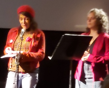 On n’assiste pas seulement à un spectacle mais à un véritable dialogue en poésie. Faisant le lien avec les différents temps du festival, la lecture des « mots ressentis » s’intègre parfaitement à l’ensemble, partagée par Sabine et Morgane en début de spectacle. À l’issue de la représentation, un repas partagé est l’occasion d’échanges informels où la poésie n’est jamais loin. À deux pas de la scène, la salle se transforme en banquet. Artistes, organisateurs, public ne font plus qu’un. Quiconque le désirait pouvait parler avec Marina Skalova et Benoît Berrou, en toute simplicité, autour d’un verre ou d’un plat, et je trouve que cette possibilité fait pleinement partie de ce qui fait le charme du festival.
