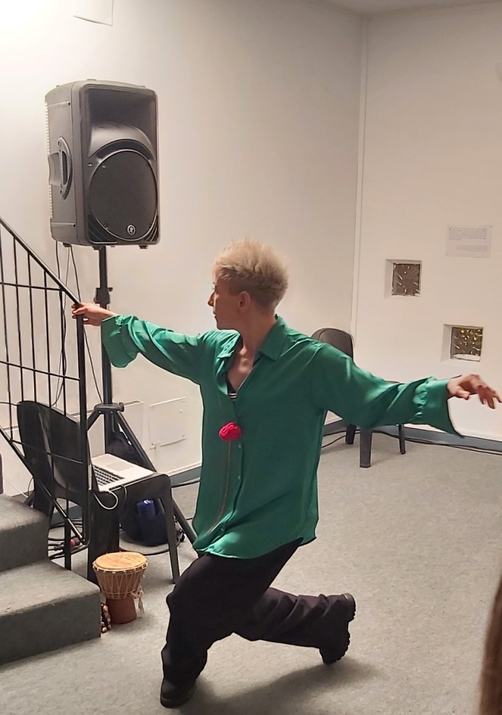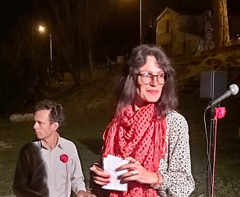 Après les mots du maire de La Gaude, de Gilles Faraut, de Sabine Venaruzzo et de Laure Nillus, on peut entendre la diffusion d’un poème sonore de Laure Nillus. La danseuse Marie-Pierre Genovese s’empare de l’espace, pour une performance dansée au plus près des spectateurs, parfois même au milieu d’eux, dans l’abolition totale de la frontière entre artistes et public.
