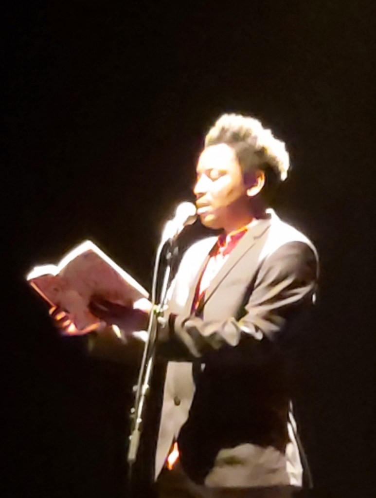 Pour finir en beauté cette soirée poétique, le champ est laissé libre à James Noël, notre parrain 2023. Nous entendons avec plaisir des extraits de la Migration des Murs, notamment. Le poète haïtien est accompagné par le musicien Bruno Desbiolles. On se laisse emporter par les mots envoûtants de la poésie.