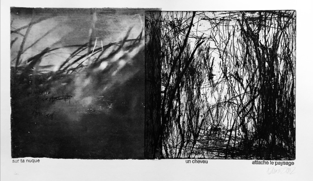 J’ai contribué à des anthologies, des revues, des livres d’artistes parfois. Le projet intérieur murissait doucement. « Je fais mon nid dans la lenteur du monde. »