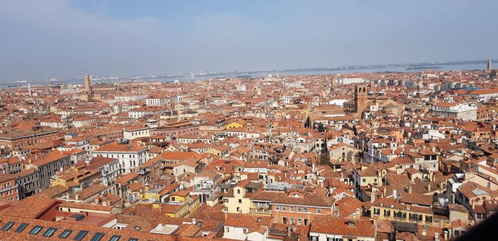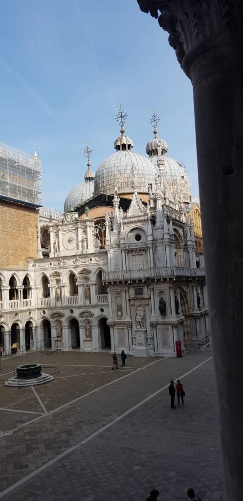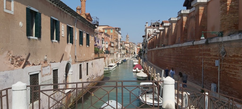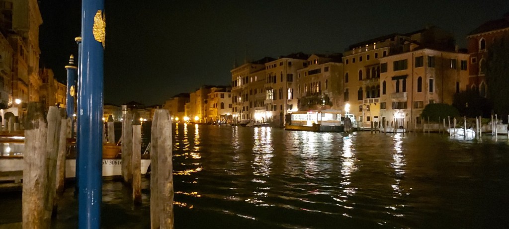Minuit. Les cloches sonnent à Venise. Dans le calme de ta chambre d’hôtel, tu imagines, tu te remémores la ville autour de toi, cette très ancienne ville bâtie sur l’eau, cette ville où le moindre bâtiment est un monument historique, préservée de l’uniformisation du monde. Cette ville où tu aimes te perdre dans le dédale des ruelles et des canaux, te laissant porter par le hasard, laissant surgir une placette imprévue, une glycine au-dessus de l’eau, une gondole émergeant derrière un vieux mur. Cette ville hors du temps, que tu apprécies d’autant plus qu’un contretemps t’a contraint à visiter d’abord les blocs gris de Mestre, les chantiers navals bruyants, et les ponts routiers sous lesquels les migrants n’ont qu’un petit feu pour se réchauffer au milieu des immondices. Drôle de sensation, où la beauté et l’injustice se juxtaposent, où l’indignation et l’émerveillement se succèdent. Les plafonds peints du palais des Doges, les dorures des églises, la dentelle des façades, ne sont pas seulement des signes de richesse, mais aussi d’art, de raffinement, de beauté. De science, aussi : imposants globes terrestres, témoins de la curiosité exploratrice d’une ville ouverte sur le monde. Venise, aide-nous à nous souvenir, de ne rien ajouter à ce qui est, que de la beauté.