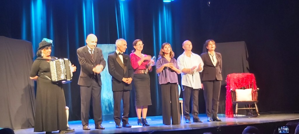 Dimanche 7 mai, 18h, au Théâtre de la Cité, à Nice. Je n’ai pu arriver au théâtre que quelques minutes avant le début de la représentation. En effet, j’avais passé l’après-midi à Grasse dans le cadre d’un festival de poésie slam. J’ai donc été surpris de découvrir la salle comble à mon arrivée : j’ai dû m’asseoir sur un strapontin. Cela m’a fait plaisir pour la troupe du Collectif du TROM. Et la représentation a été au niveau de cette attente.