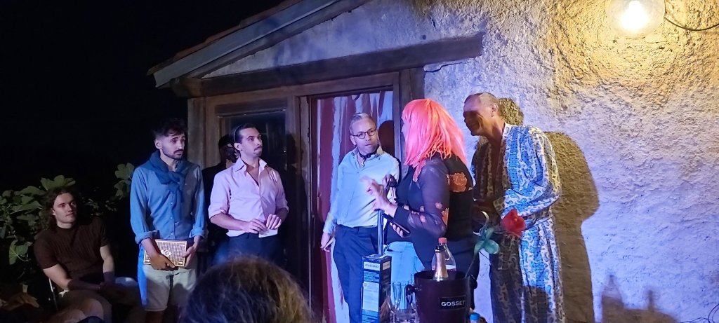 Samedi soir, dernier jour de septembre, on terminait l’été sur la terrasse de Nathalie Léger et Lou Spry. C’est dans cet espace, intimiste mais à ciel ouvert, que la troupe de théâtre amateur de l’association Polychromes a revisité quelques-uns des sketches de « Palace », la série humoristique de Jean-Michel Ribes.