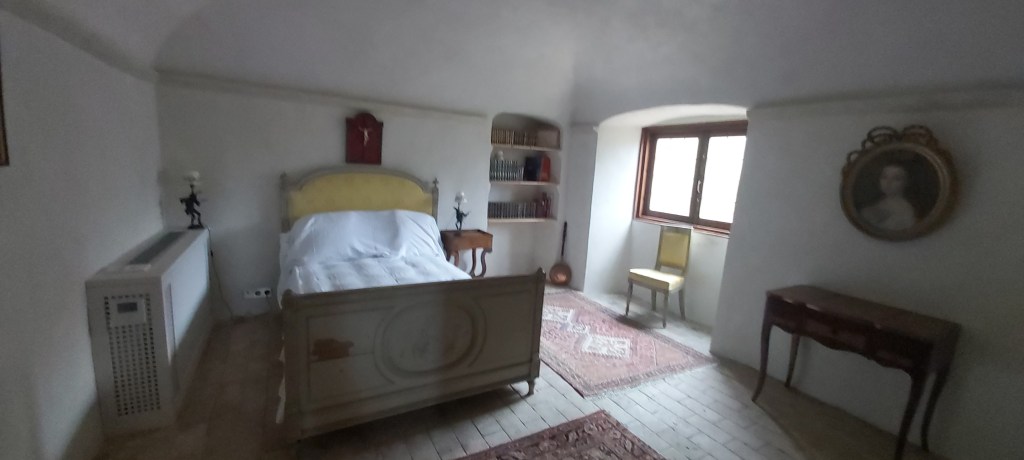 Les pièces situées à l’étage sont beaucoup plus lumineuses. Elles sont percées de larges fenêtres, même si certaines ont été occultées depuis que la Révolution a créé un impôt calculé sur la base du nombre de fenêtres. Le mobilier n’est pas d’époque, mais il a été pensé de manière à être relativement cohérent avec le lieu. La guide fait également part des réflexions et questionnements passionnants des experts des Monuments Historiques, placés face à une équation complexe, puisque sauvegarder le site impose de faire des modifications qui l’altèrent d’une autre manière.