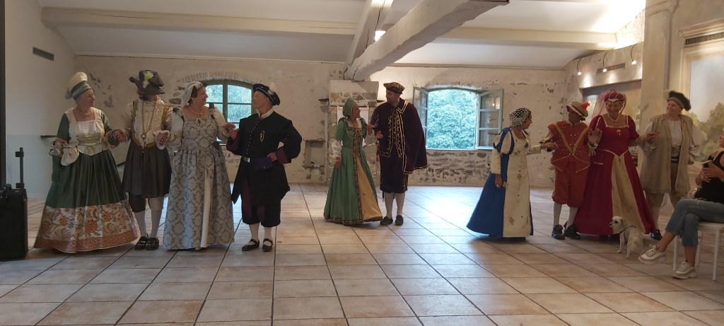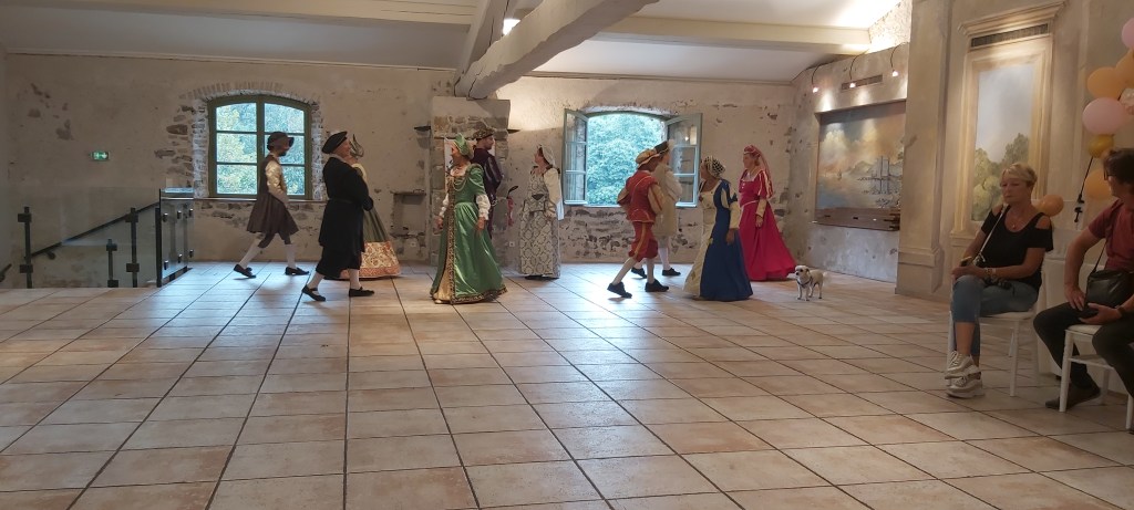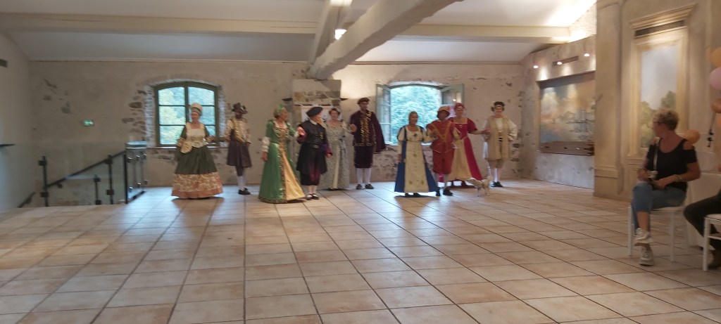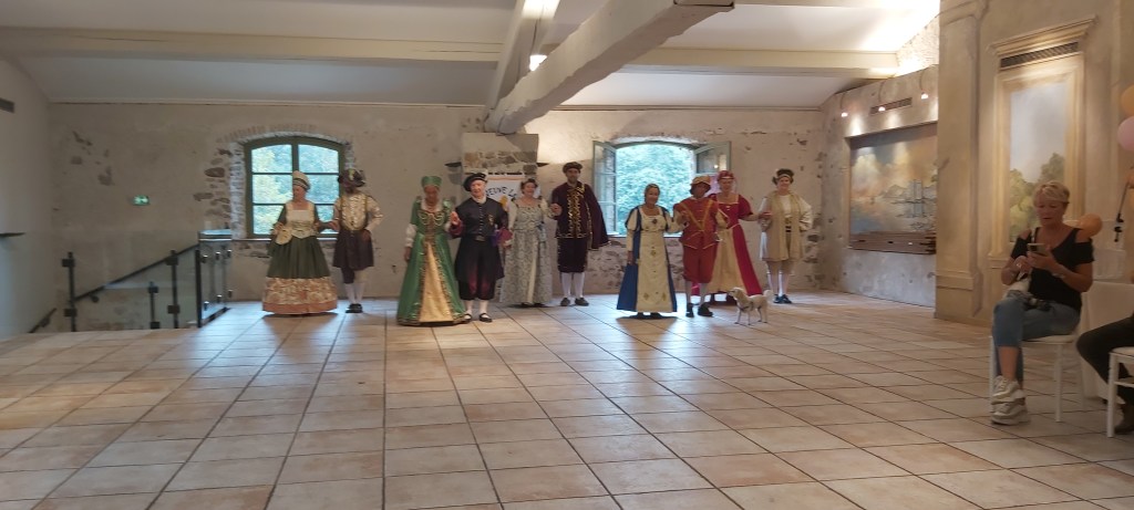 L’association « Villeneuve se danse » a en effet préparé un petit spectacle pour clore la visite. Plusieurs couples en tenue d’époque entament un ballet de danses anciennes, du Moyen-Âge et de la Renaissance. Cela m’a rappelé certains cours d’histoire de la musique à l’ÉSPÉ, on l’on nous avait appris à enseigner les danses anciennes. C’était vraimment une belle façon de clore la visite. En sortant, nous avons pris le temps de faire un tour dans le parc, agrémenté de beaux bassins qui ne sont sans doute pas d’époque, mais qui, entourés de statues, enjolivent le parc par ailleurs plutôt vide.