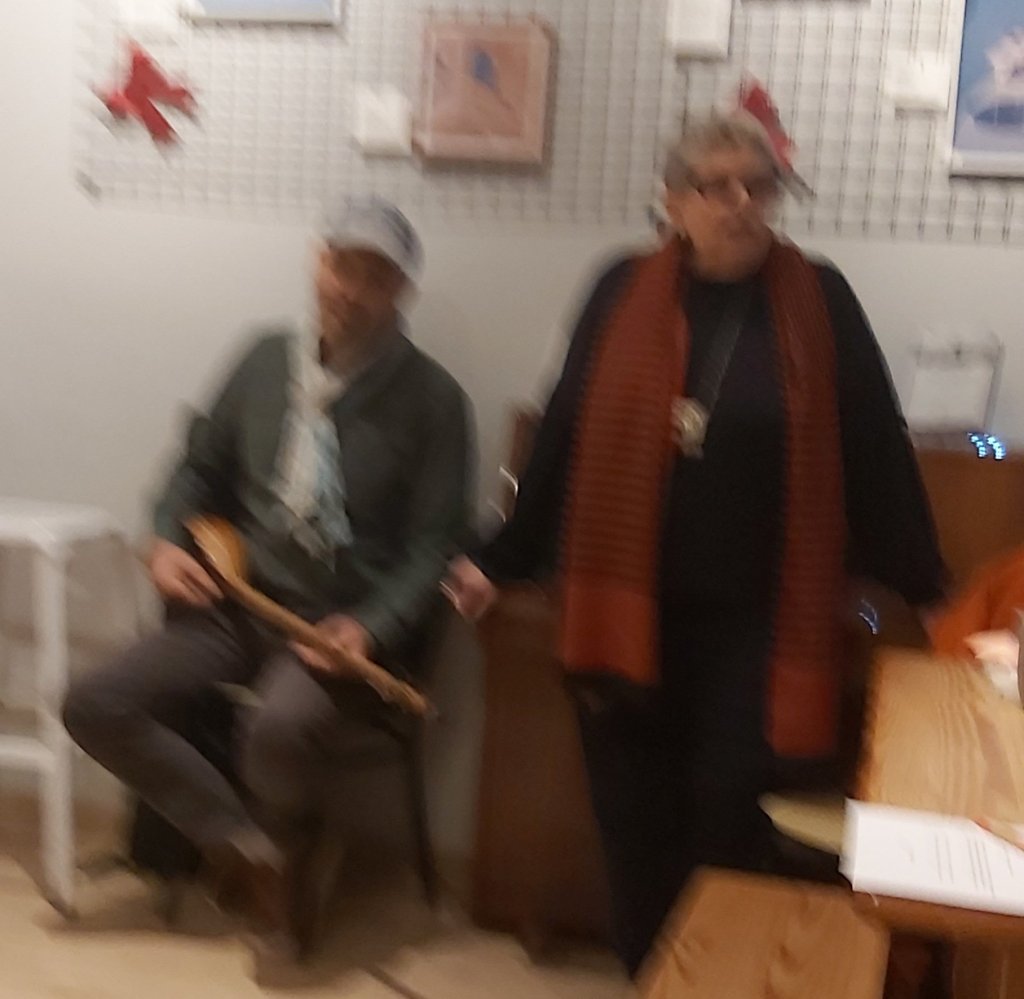 C’est une lecture chorale qui a suivi cette lecture croisée. Afin de présenter son dernier recueil, coécrit avec la poète italienne Alma Saporito, Marilyne Bertoncini a distribué de petits papiers à chaque convive, comportant un haïku dans ses deux versions française et italienne. Il s’agit soit des haïkus italiens d’Alma Saporito traduits en français, soit des haïkus français de Marilyne Bertoncini traduits en italien. Ce livre bilingue, paru en septembre 2023 aux éditions Pourquoi viens-tu si tard ?, s’orne en outre des photographies de Francesco Gallieri, images en noir et blanc, au contraste augmenté, des oiseaux du Delta du Po.