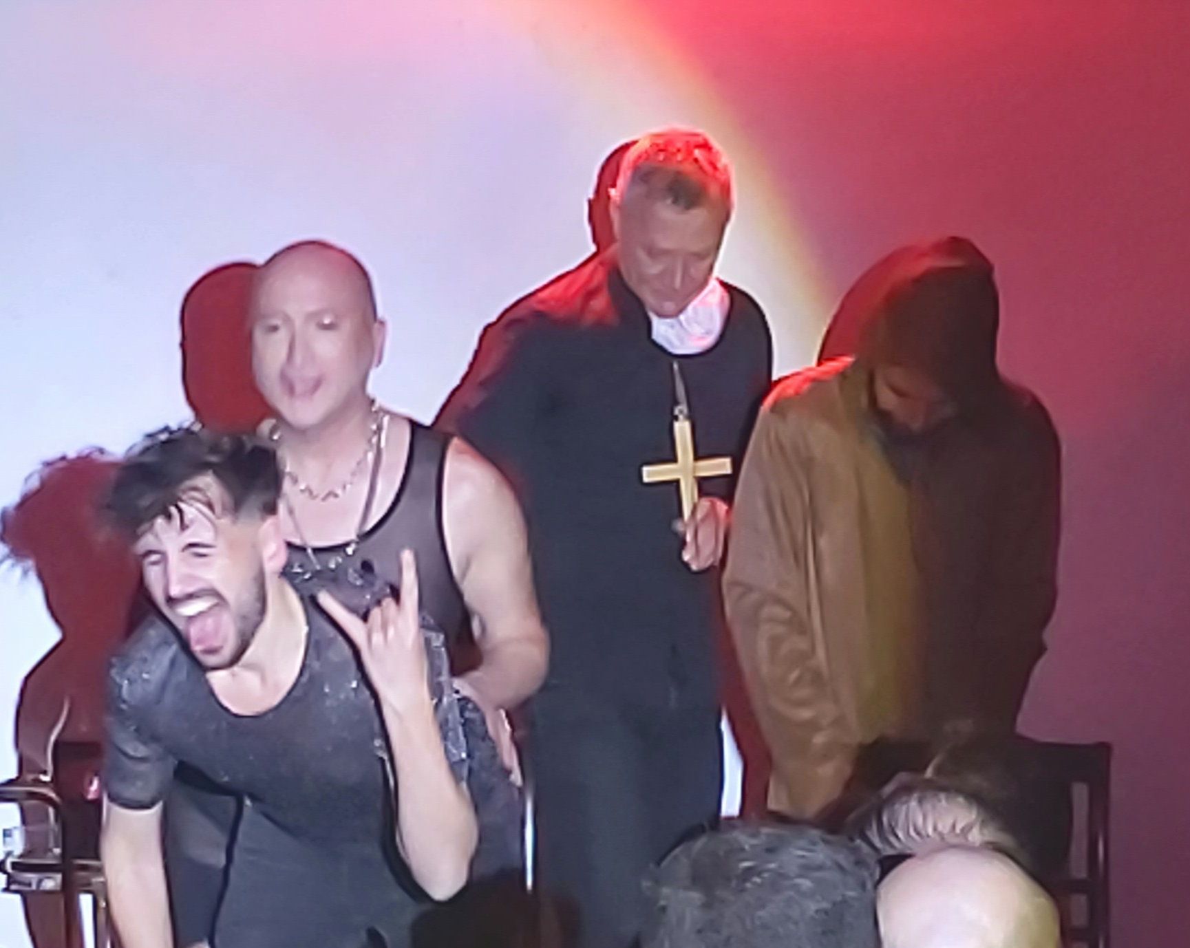 J’ai été heureux d’assister à cette troisième représentation, qui offrait une ampleur supplémentaire par rapport au spectacle donné cet été sur une terrasse privée. La joyeuse troupe a réussi son pari, alors même que jouer dans un bar, face à des gens occupés à boire et à manger, n’avait rien d’évident. J’ai à nouveau ressenti l’appel de la scène, le bonheur d’être sur les planches et d’y être tout à la fois soi-même et quelqu’un d’autre : je sais bien que, tôt ou tard, je m’y remettrai. La troupe de Polychromes permet aux acteurs de mettre leur homosexualité sous les projecteurs, et cela doit être extrêmement jouissif et libérateur. Certes, la société évolue dans le bon sens, mais malgré tout, pour éviter les regards moqueurs ou désapprobateurs, nous dissimulons au quotidien une partie de nous-mêmes, en de très nombreuses occasions. Au théâtre, nous pouvons la montrer et même en rire. Et cela fait un bien fou. Aux comédiens, dont on voit bien qu’ils s’amusent comme des petits fous (ou folles, c’est selon). Et, par conséquent, au public, qui ne peut qu’adhérer face à tant de joie communicative et d’humour qui ne boude pas son plaisir.