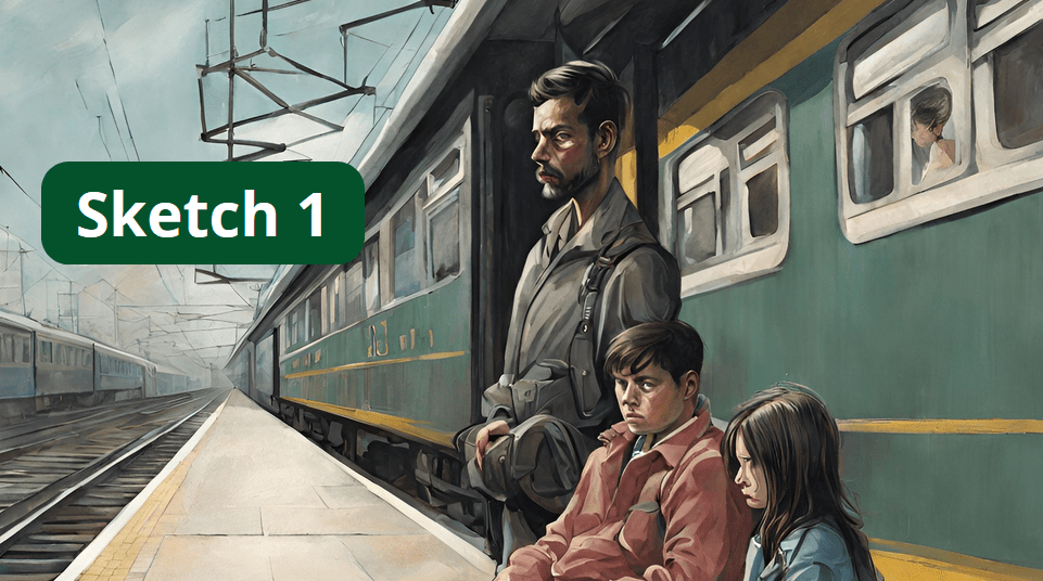 Famille en train de faire ses adieux sur le quai. Sacha peut très bien être une fille, auquel cas il y aura simplement de très minimes modifications à faire dans le texte.
