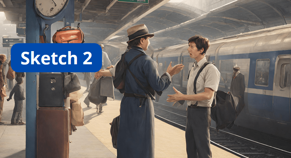 Chef de gare, d’un ton conciliateur : Allons, allons, il doit y avoir un moyen de résoudre ce petit différend. Quel est votre problème, cher monsieur ?