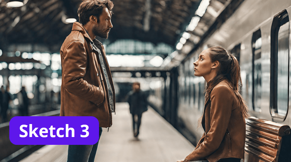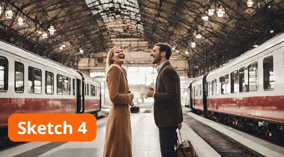 Le rêveur : Non, non, je suis tout seul. C’est juste que… Cela vous paraîtra peut-être un peu bizarre… J’aime regarder les trains, imaginer leurs destinations, écouter leur sifflet, me laisser bercer par le bruit des rails. Vous ne trouvez pas que c’est magique, une gare ?