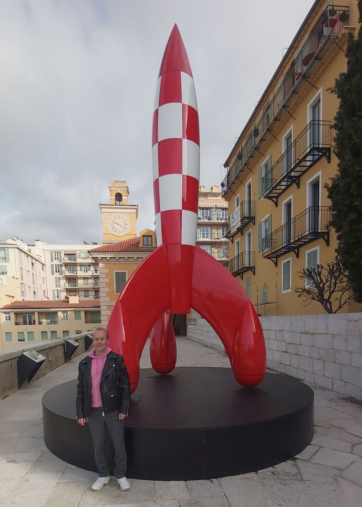 La deuxième partie de l’exposition est abritée par l’espace Lympia, sur les quais du port de Nice. Le bâtiment correspond à l’ancien bagne de Nice. Le lien n’a aujourd’hui plus rien d’austère, reconverti en musée. Et, sur la magnifique terrasse qui offre une vue imprenable sur le port, se dresse une réplique de la fusée qui a emmené Tintin sur la Lune.