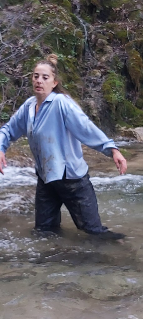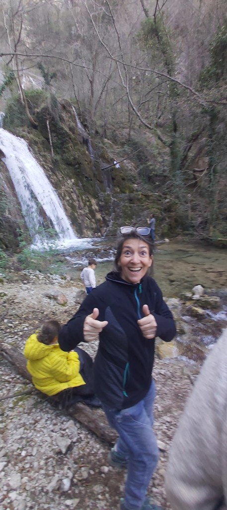 Sabine Venaruzzo nous attend un peu plus loin avec des cris chantés qui résonnent au-dessus du tumulte de la rivière. Elle nous invite à prêter l’oreille aux sons, et nous poursuivons notre marche avec davantage d’attention.