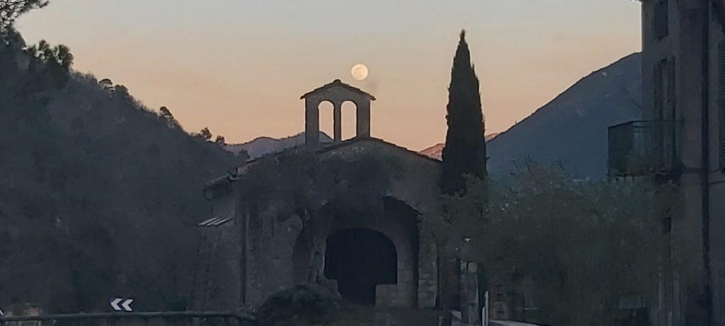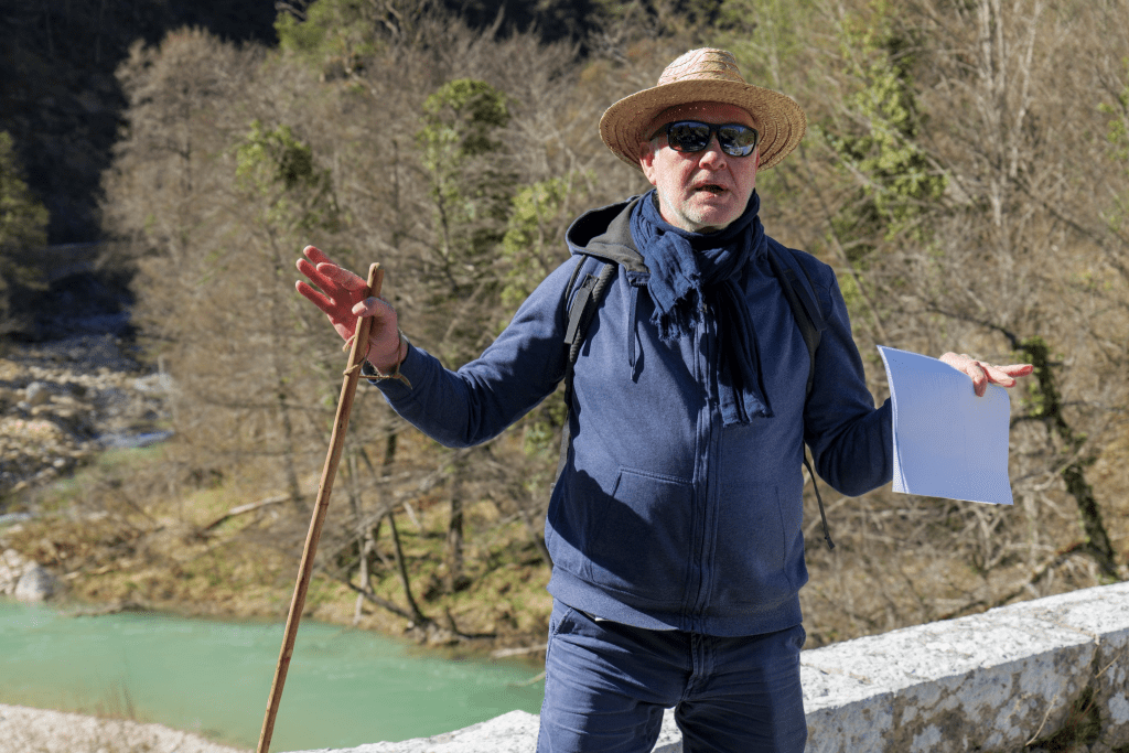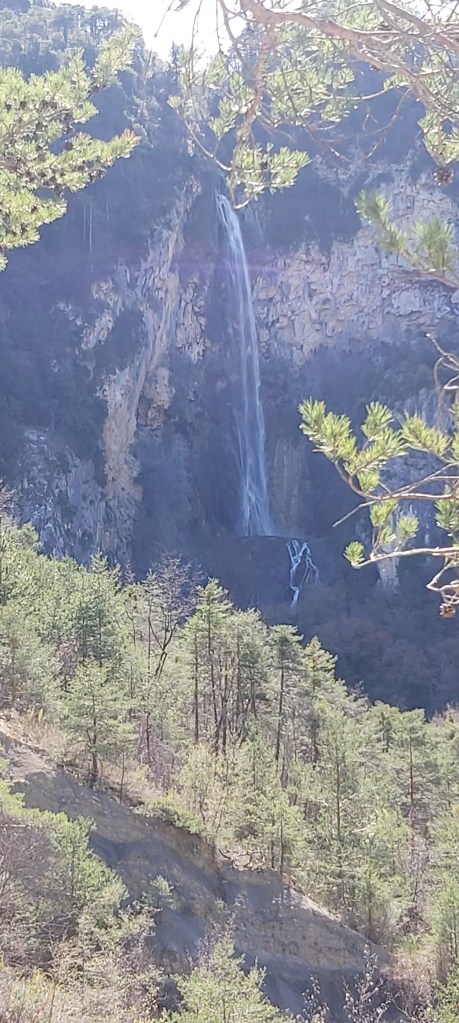 Nous sommes accueillis par monsieur le maire, Anthony Salomone, très heureux que le festival se termine comme l’an dernier dans son village. Il milite, avec l’aide de Patrick Quillier, élu municipal à la culture, professeur des universités en retraite, pour le développement d’une offre culturelle de qualité dans les territoires ruraux. Passionné par l’histoire et la géographie de son village, le maire explique que le nom d’Aiglun ne vient pas du mot « aigle » comme on le croit souvent, et comme le blason du village le laisse penser, mais de « aigo », l’eau en occitan. Aiglun est en effet un bastion des eaux, avec de nombreuses sources, sans compter l’Estéron qui coule au bas de la vallée, et la cascade de Vegay qui est la destination de la « randocriture ». Anthony Salomone rappelle l’importante biodiversité de cette rivière classée, avec des espèces végétales et animales endémiques. La forêt abrite cerfs et mouflons, ainsi que deux meutes de loups, comme en attestent les crottes recouvertes de poils que nous croisons.