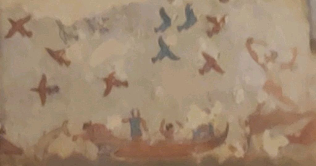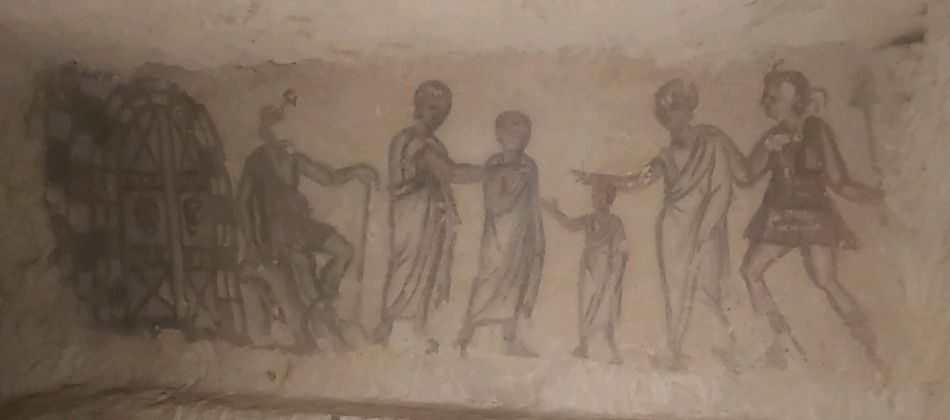 La scène ci-dessus paraît représenter toute une famille, avec une personne âgée à gauche, un enfant au milieu… Il est émouvant de se dire que plus de deux millénaires nous séparent du moment où cette fresque a été peinte.