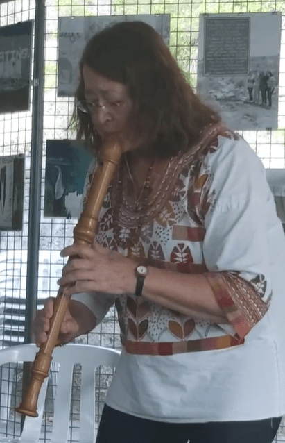 Le musicien a ensuite été accompagné par Claudia Christiansen, musicienne elle aussi, pour une improvisation musicale très réussie. Elle a joué du tambour, de la flûte, et s’est aussi servie d’instruments plus atypiques, comme des verres à pied ou des bouteilles en verre. J’ai filmé en une seule vidéo les interventions musicales de Benjamin Flora Saxemard avec Hoda Hili et avec Claudia Christiansen, sous la forme d’un direct Facebook. Voici le lien : https://fb.watch/tSKEFnecRF/.
