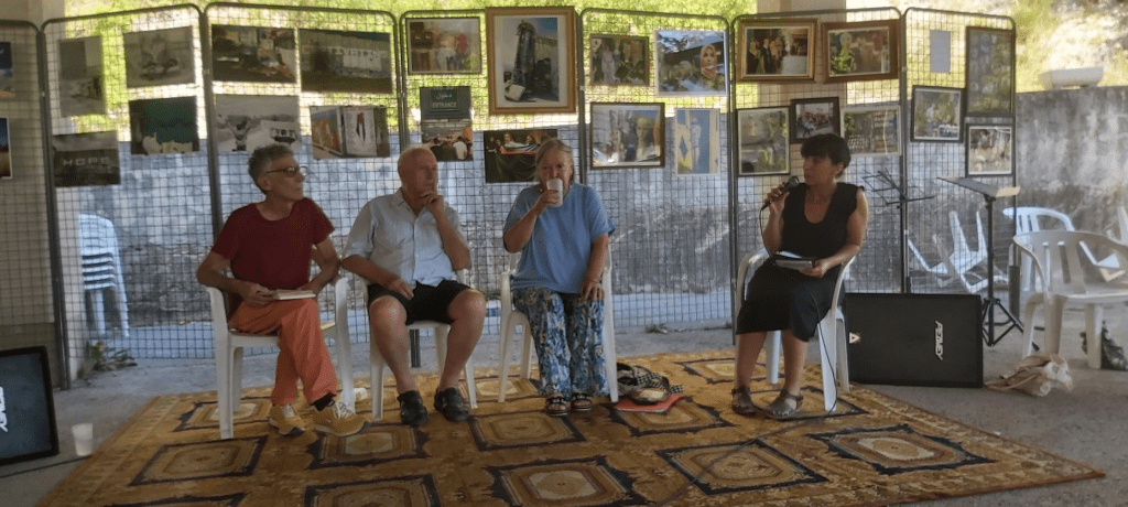Pour ces quatre merveilleuses journées en poésie, pour tous ces poèmes si riches et si différents entre eux, pour toutes les discussions informelles qui se sont glissées dans les interstices de la programmation, merci. Merci à Patrick Quillier et à Hoda Hili, qui, en plus d’être les immenses artistes que l’on sait, sont des passeurs dévoués de poésie, et de très grands humains. Il faut voir à quel point ils sont attentifs à tous et à chacun, soucieux que chacun se sente bien et puisse s’exprimer selon son souhait. Il est extrêmement rare de voir un tel souci de l’autre et un tel sens de l’accueil. Patrick et Hoda ont tenu à cuisiner eux-mêmes la majeure partie des repas, transportés dans de grandes jarres, ce qui représente des heures de travail pour régaler nos corps autant que nos esprits ont été choyés. Pour cet investissement hors normes, encore une fois, merci.