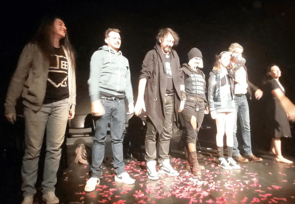 Par conséquent, je ne me vois pas conclure autrement qu’en saluant le talent de toute la troupe de comédiens — Benoît Berrou, Alison Boueri, Eric Guyonneau, Emilie Jobin, Isaac Leone, Thomas Oudin-Arnulf et Muriel Revollon –, avec une mention spéciale pour l’accompagnement musical de Benoît Berrou, à la fois intense et envoûtant, et mes plus chaleureux applaudissements pour la metteuse en scène Muriel Revollon, qui a poussé la mise en scène jusqu’à l’orchestration et à la chorégraphie, pour un résultat tout simplement fascinant. Si jamais la pièce devait être jouée à nouveau, je ne peux que vous recommander d’y aller !