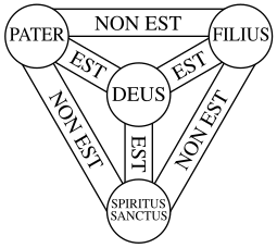 Pour comprendre le dogme de la Trinité, on peut utiliser la représentation sous forme de triangle qu’est le Scutum Fidei. Cette illustration montre bien que le dogme de la Trinité a quelque chose d’illogique, et qu’il ne peut donc s’appréhender par la raison mais bien par la foi.