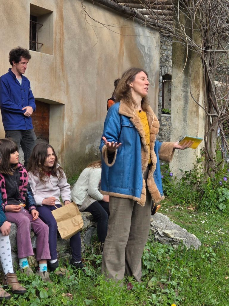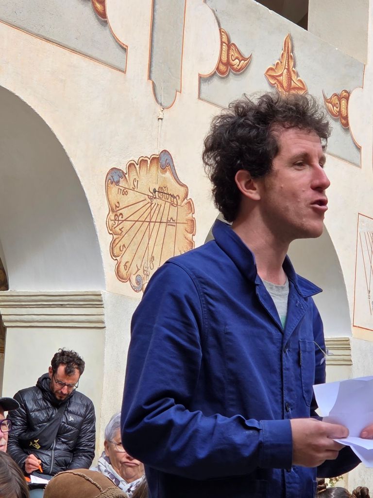 L’après-midi a débuté dans le cloître, où nous avons entendu les restitutions des ateliers d’écriture, ainsi que les voix des résident.e.s de l’EHPAD de Saorge.
