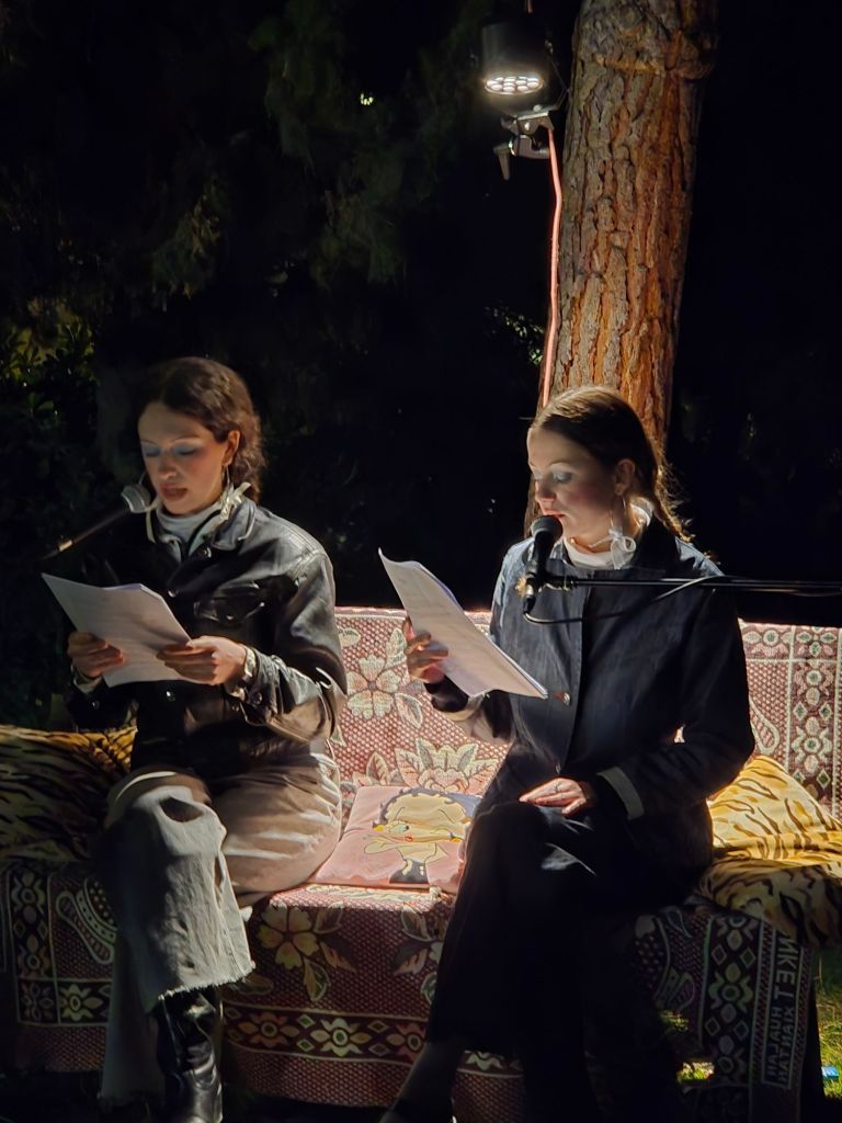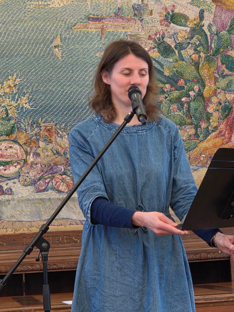 La suite a eu lieu dans les jardins du monastère, où nous avons eu le plaisir de découvrir la douceur et la force de la poésie de Mélanie Leblanc, marraine des Journées Poët Poët 2025. Douceur de ses vœux adressés au public, et force de son « manifeste du Nous » qui a conclu la journée.