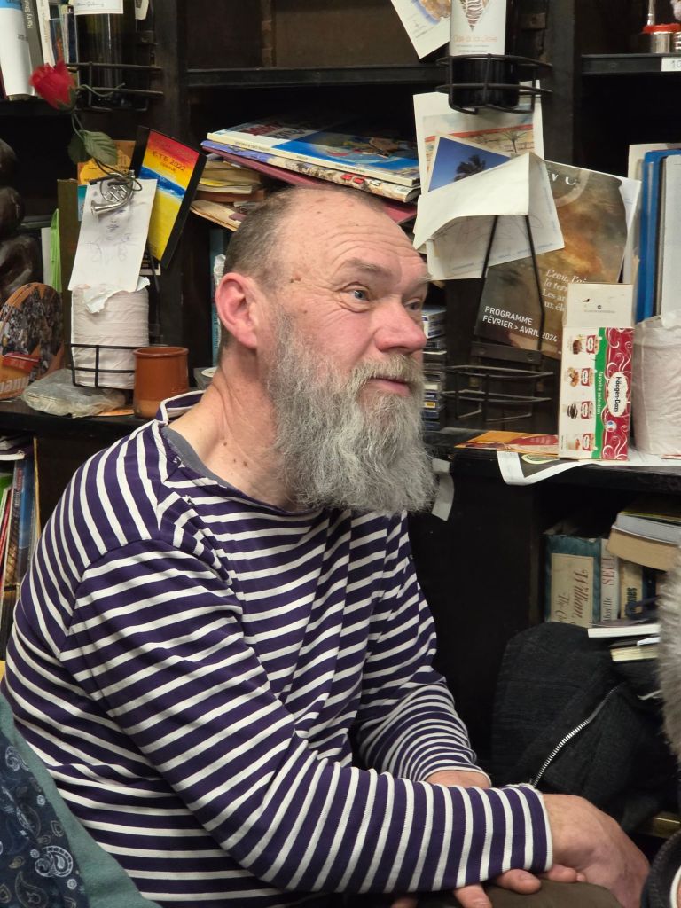 Après cette performance intense, Mélanie Leblanc rentre à son hôtel prendre un peu de repos, pendant que Sabine, Karina et moi accueillons notre nouvel invité, Timoteo Sergoï, poète belge qui vit actuellement à Châlons-sur-Saône, où son cœur l’a conduit. Le courant passe immédiatement avec le poète qui a beaucoup d’humour et de simplicité.