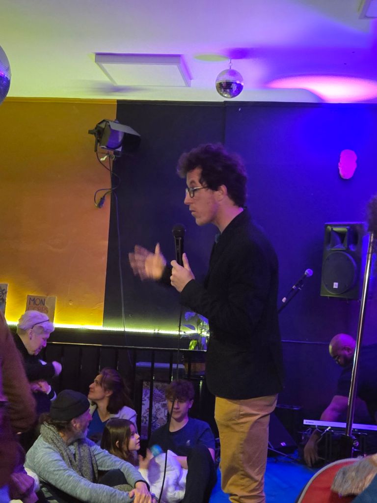 - Le lundi 24 mars, j’ai performé Du Néon aux Étoiles, mon deuxième recueil de poésie, à la Cave Wilson, un magnifique cabaret niçois.