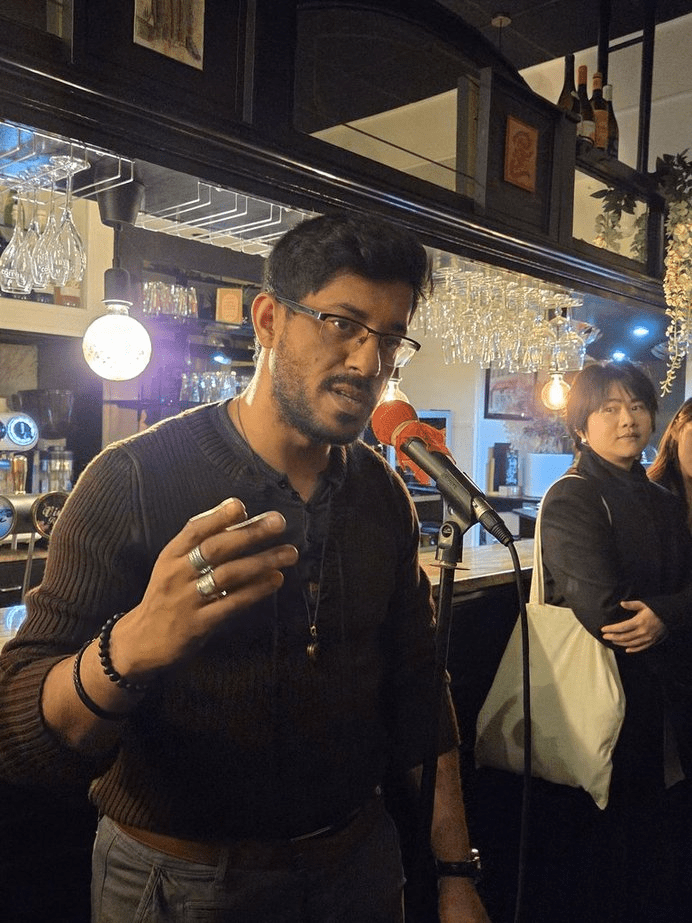 Les poèmes de Sonnet Mondal, poète indien habitant Calcutta, offrirent une continuation logique, en nous transportant du côté de la maison de son grand-père et de sa véranda. Ces poèmes en anglais ont été traduits pour l’occasion par Ariel Tonello.