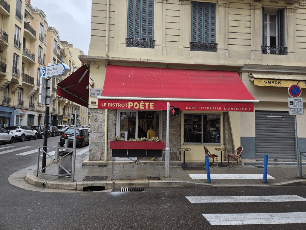 La matinée du samedi 15 mars devait avoir lieu sur la plage du Centenaire, pour entendre de la poésie face à la mer. Une météo défavorable et l’organisation d’une course cycliste sur la Promenade des Anglais nous ont fait changer de lieu. Camille et Aurore ont tout de suite accepté de nous accueillir au Bistrot Poète, pour ce qui est devenu un très agréable petit-déjeuner poétique.