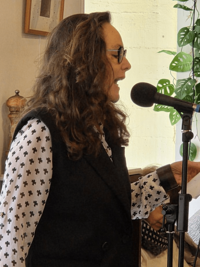 Là, côté cour de la scène, j’ai déclamé mon poème « Au mois de mai », extrait de mon premier recueil Concordance. Il était prévu que ce poème soit interprété à quatre voix par la chorale dont je suis membre, sur une musique composée par Philippe Benassaya, mais une urgence médicale a rendu impossible cette représentation. Ce qui importe, c’est que la personne concernée aille mieux aujourd’hui. Ce chant sera créé le 21 juin prochain à l’occasion de la fête de la musique.