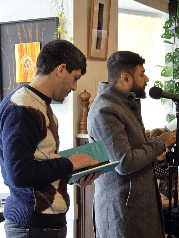 Ensuite, nous avons pu entendre des poèmes de Sonnet Mondal dans l’église du monastère, accompagné par un pianiste et un violoniste. J’ai eu le plaisir de lire la traduction d’Ariel Tonello, qui ne pouvait être là personnellement.