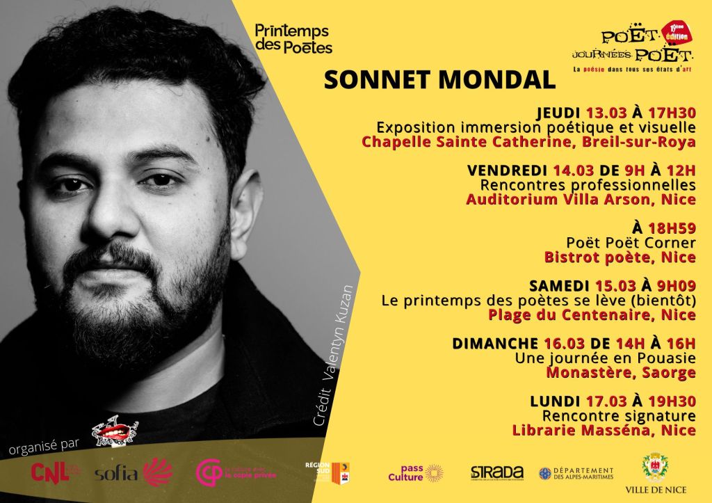 Né en 1990 à Calcutta, Sonnet Mondal est l’une des grandes voix de la poésie indienne d’aujourd’hui. Sa participation à de nombreux festivals, ses publications dans de nombreux pays en plusieurs langues, font rayonner sa poésie tout autour du monde… et jusqu’à Nice et Saorge, puisqu’il était récemment l’invité d’honneur des Journées Poët Poët 2025. Il a publié notamment Karmic Chanting et An Afternoon in My Mind, et ses poèmes figurent régulièrement dans des revues internationales prestigieuses. Aujourd’hui, je vous présente un poème qu’il a tout récemment partagé sur les réseaux sociaux, dans une traduction personnelle.