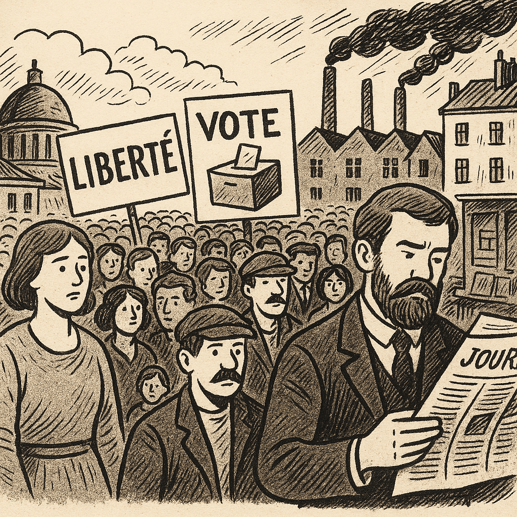 En France, la notion de suffrage universel est bien implantée, même si elle ne concerne alors que les hommes. À la veille de la Première Guerre mondiale, le modèle démocratique est relativement enraciné. Depuis la chute du Second Empire en 1870, la France est une République, et ce régime n’est plus guère remis en cause.