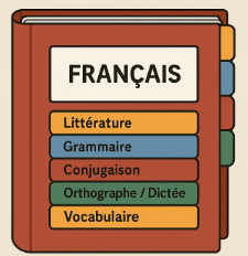 📘 Petit cahier bleu de leçons : juste pour les traces écrites en français, maths et un peu d’anglais.
