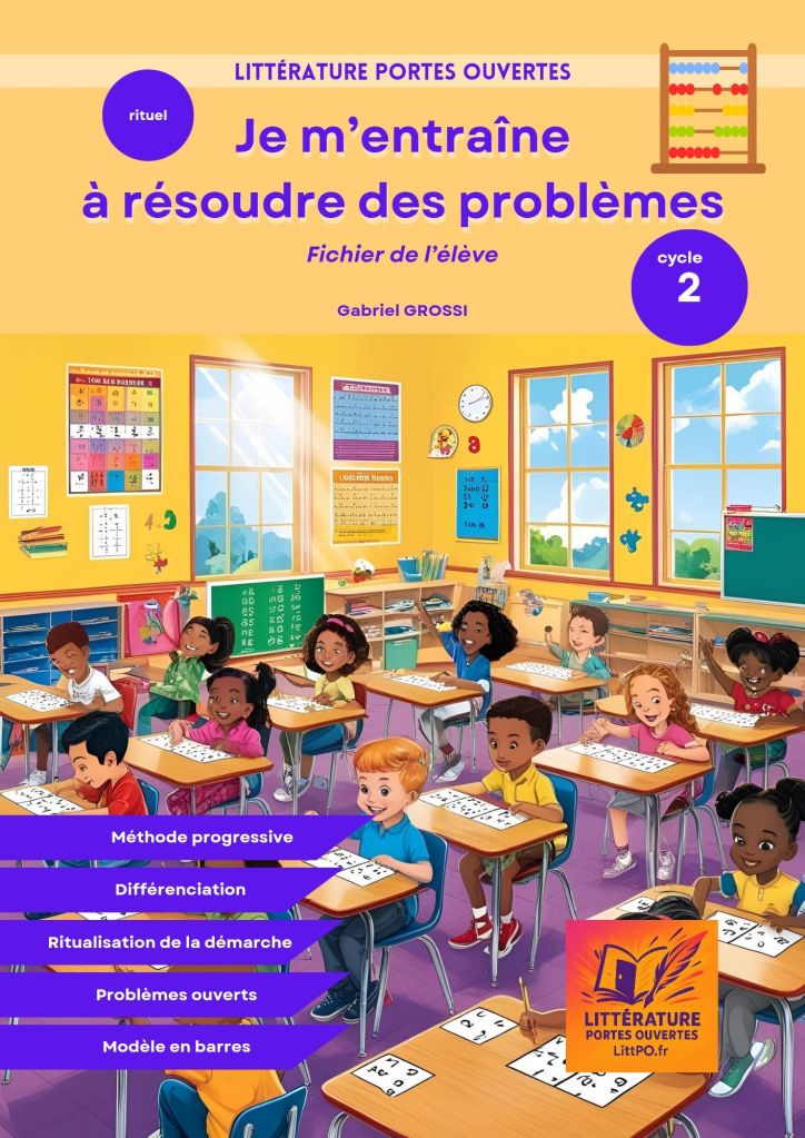 Pendant l’année scolaire 2024-2025, j’ai eu un CP à mi-temps (j’étais TRS). Je proposais un rituel de problèmes chaque fois que je venais (deux fois par semaine, donc), et les élèves faisaient deux problèmes à chaque fois : l’un de façon guidée, avec le maître, pour acquérir des automatismes, et un autre davantage en autonomie. J’ai rassemblé ces problèmes, puisés à droite et à gauche sur Canva, et cela a constitué un fichier assez imposant. Cet été, j’ai remis en forme ce fichier, dans l’idée d’une publication en auto-édition, qui me permettrait surtout d’avoir un fichier imprimé pour chaque élève, et de ne plus avoir de photocopies à faire tous les jours.